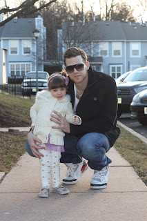 Weather was kinda nice so we headed out side to get some energy out. And check out Ry lookin all good! He's growing his hair out. I love it! Wanted to get some new pics of Ry with his girls. When I finally said, ok Daddy with Mya and Ashley, Mya took off, go figure!
