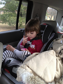 We were at a stop light, I turn around to her putting her lip gloss on, SUCH a girlie girl. LOVE it!
