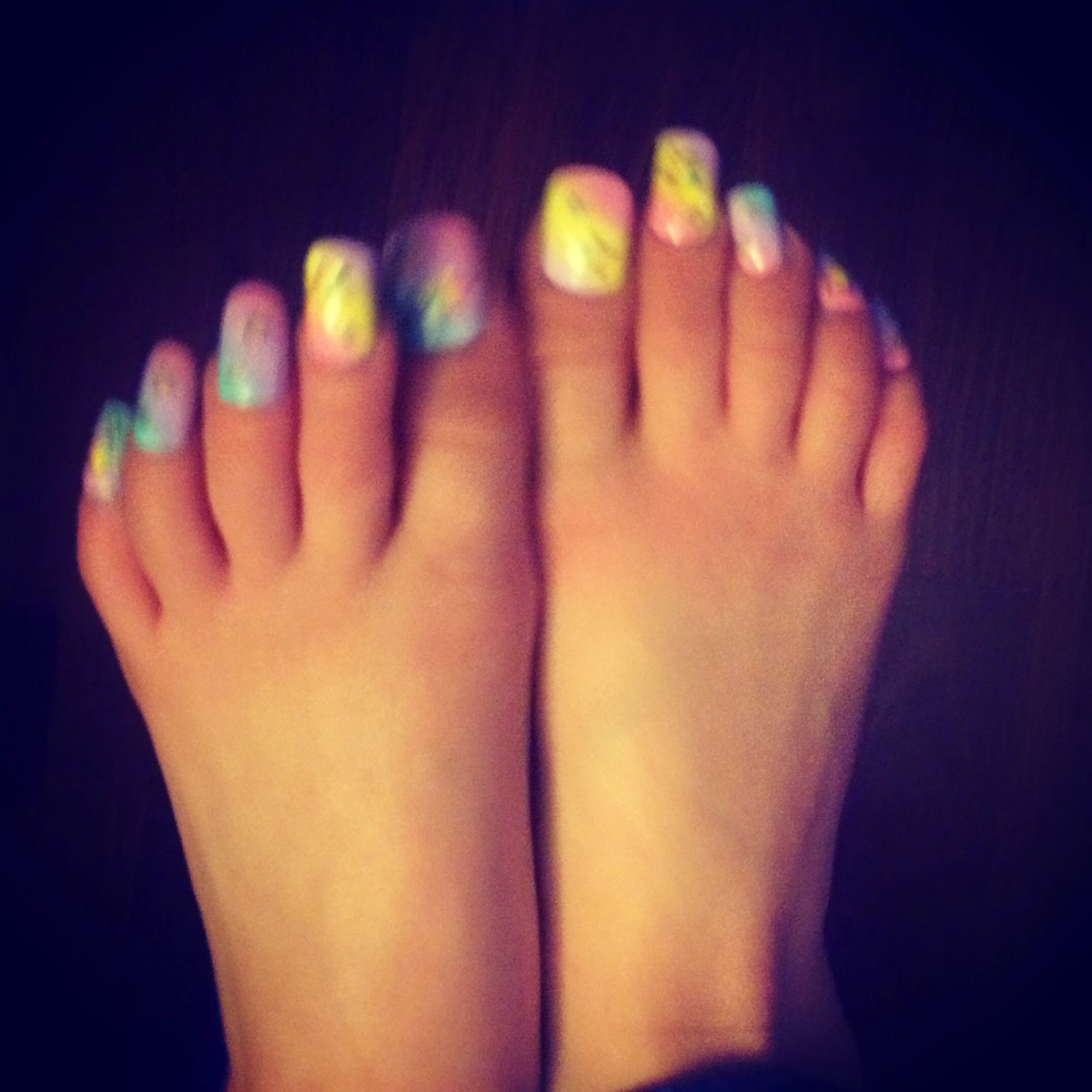 Ash wanted to put her fake nails on her toes....whatever girl.